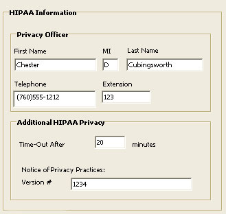 The screen below shows where you record pertinent information about the HIPAA-required Privacy Officer for your office.